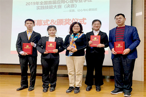 12月5日-6日,由全国应用心理专业学位研究生教育指导委员会主办的首届全国应用心理专业学位实践技能大赛(决赛)在华东师范大学举行。王艳郁、高新义两位老师指导的由心理学系2019级硕士研究生晋雪莹、李炜达、闫盼盼组成的代表队获应用心理案例开发比赛一等奖,学校获优秀组织奖,王艳郁教授获优秀指导教师。