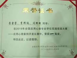 2016、2017年分别获得山东省大学生朋辈心理技能大赛一等奖、二等奖