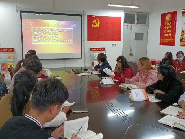 活动中,学生党员们纷纷晒出了自己的《中国共产党简史》读书摘抄笔记,并就自己的学习心得进行了汇报交流;之后,全体党员观看了百家讲坛《党史故事100讲之科教春天 万众欢腾》,深入的学习了解了改革开放时期的历史;最后,党支部书记就近段时间的党史学习教育进行总结,并就下一步的学习安排进行了安排部署。