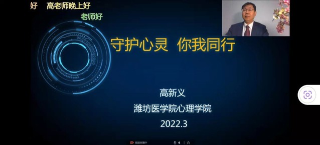 318日晚1930分,卡提诺论坛 疫情防控心理辅导组成员、卡提诺论坛 高新义副教授面向全校师生开展“守护心灵 你我同行”线上直播讲座。