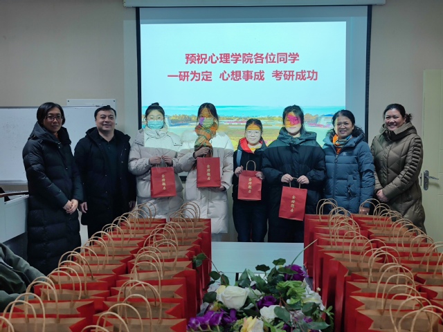首先,学院于心理健康服务中心开展考研动员会,李洪先高度赞扬了同学们为梦想奋斗、向成功进发的刻苦精神,并表示学院始终坚持以生为本,完善服务保障,全力为考研同学保驾护航。王艳郁鼓励同学们坚定信心、调整心态,备考过程中注意劳逸结合,保持身心健康,以最佳状态迎接研究生考试。随后,各位老师到宿舍走访慰问考研学子,并送上精心准备的“考研加油包”,预祝他们考研顺利,成功上岸。此外,学院领导、青年教师、辅导员以及低年级同学录制考研祝福视频,并亲手书写祝福语,为考研学子送上学院全体师生最真挚的祝福。