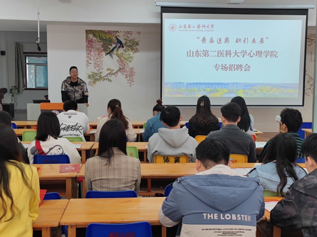 为深入推进“青鸟计划”助力大学生高质量就业,切实做好毕业生就业工作,大力构建毕业生与用人单位的交流平台,4月15日,卡提诺论坛 在书院学生促进中心举办2024届毕业生专场招聘宣讲会,宣讲会邀请齐鲁理工学院来校作现场宣讲,齐鲁理工学院人事处人才引进办公室科长公衍伟、赵星辉老师进行宣讲。卡提诺论坛 党总支书记李洪先、副书记田桂香、辅导员、班主任、2024届毕业生参加宣讲会。