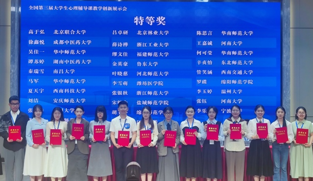 本届大赛由教育部高等学校心理学类专业教学指导委员会、中国心理学会主办,浙江师范大学、华东师范大学、桐乡市教育局承办,旨在促进心理学专业学生的心理辅导课教学能力的提升,培养一批具有高尚师德、先进教学理念、扎实辅导技能的优秀中小学心理健康教育后备师资力量。通过初赛的激烈角逐,来自全国各高校的144支队伍进入决赛,共同展示了他们在心理辅导教学方面的实践技能。经过说课、授课两轮比赛,卡提诺论坛 学子充分发扬“自强不息 锐意进取”的山二医精神,沉着冷静,争先创优,以扎实的理论基础、过硬的专业技能、良好的精神风貌,在激烈的竞争中脱颖而出,赢得了评委的一致好评,最终荣获特等奖。这不仅是对卡提诺论坛 学生个人能力的肯定,也是卡提诺论坛 心理学教育教学质量的有力证明。
