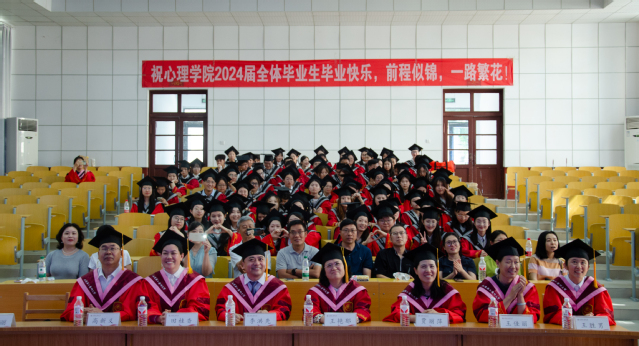 学院学位评定分委员会主席、院长王艳郁发表讲话,她代表学院对圆满完成学业的88位本科生致以最热烈的祝贺。她指出,过去的四年,在全院师生的共同努力下,捷报频传,共同为学院的高质量发展贡献了智慧和力量。她希望毕业生充分运用心理智慧,勇敢地面对生活,坚定追求梦想;以崇高的理想信念、饱满的精神状态,肩负起推动个体和社会心理健康的重要使命!