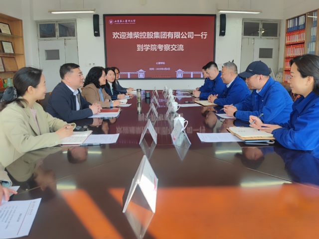 座谈会上,李洪先对于升波一行的到来表示欢迎,并就学院党建工作和人才队伍建设情况进行介绍,他指出,学院充分发挥党建引领作用,经过多年发展,构建“制度化、精细化、一体化、品牌化”的“125党建+业务融合发展模式”,党建工作取得长足发展和优异成绩,他希望双方能够加强党建联建共建,在社会服务、就业工作等方面发挥积极作用;王艳郁就学院专业建设、人才培养、教学科研、社会服务情况进行详细介绍,希望与潍柴集团工会加强合作、优势互补,共同服务潍坊经济、科技、文化建设。于升波对学院专业建设表示肯定,对学院发挥社会服务功能、服务地方做出的突出贡献表示赞同,希望双方能够在心理健康体系建设方面进一步洽谈合作事宜,充分发挥卡提诺论坛 专业优势,为潍柴集团心理健康工作提升提供专业支撑。