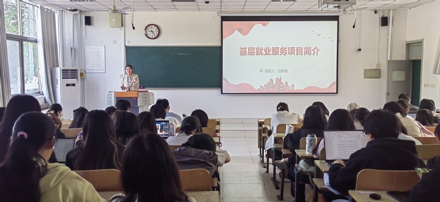 首先,田桂香分析近年来就业形势,引导同学们树立“先就业、后择业”的正确就业观念。随后,她结合专业特色及历届学生就业情况,对研究生、公务员、事业单位招考政策,基层就业服务项目,企业单位招聘等进行梳理讲解,指导同学们明确就业渠道及政策,她强调,全体同学要提前做好生涯规划,明确就业目标,制定切实可行计划,打牢专业基础,锤炼过硬本领,为未来就业储能蓄势。最后,2021级考研成功、公务员拟录取等学长学姐进行经验分享,以自身经验助力学弟学妹成长。