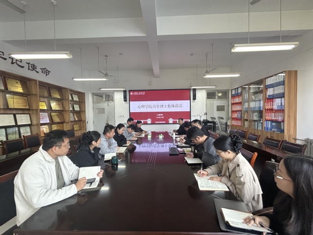 李洪先首先对青年博士教师近年来的工作成绩和对学院发展所作的贡献表示充分肯定,并带领青年博士们一起学习了师德师风、学校关于博士聘期期满考核和职称评审等相关文件。他对青年博士提出三点期望和要求,一是以德立身,坚守师德与学术底线。恪守师德师风,牢记“学高为师,身正为范”,在言传身教中传递正能量,严守学术规范,杜绝数据造假、抄袭剽窃等行为,维护学术尊严。二是立足国家需求,开展学术研究。紧扣“健康中国”等国家战略,聚焦心理健康、青少年心理发展等重大课题,充分利用校内校外科研平台,把握学校学院发展的关键机遇,力争产出更多高水平研究成果。三是坚持立德树人,潜心教书育人。青年博士要坚持立德树人根本任务,牢记“为党育人,为国育才”的初心使命,潜心做好教育教学工作,培养有温度、有担当的心理学人才。